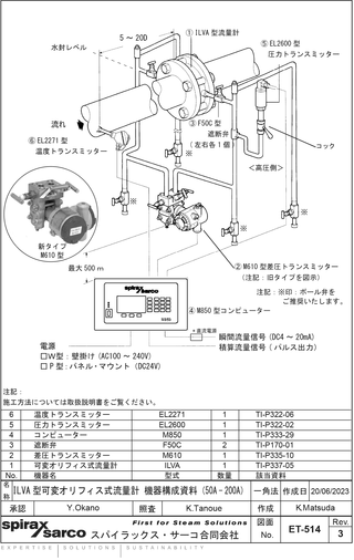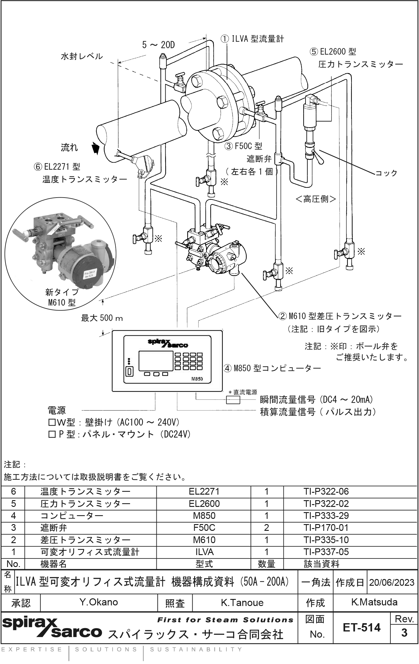 "ILVA型可変オリフィス式流量計構成図_M850+EL2600_50A-200A" の最低購入数は 1 です.