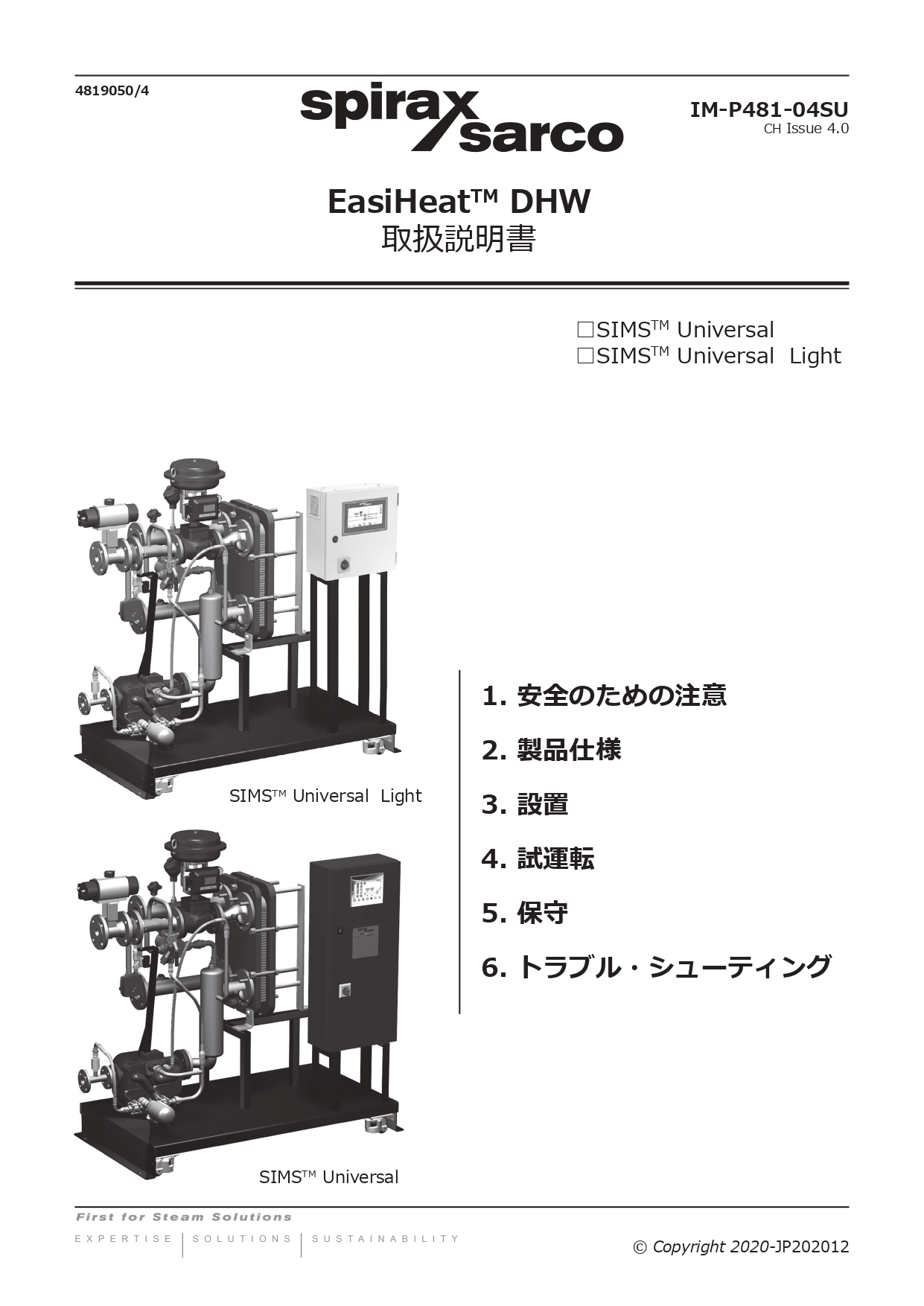 EasiHeat ™ DHW システムは蒸気を使用して飲用高温水またはプロセス用高温水を正確に加熱します。50kW から約1300kW までの交換熱量に合わせてサイズ調整できます。システムは完全に組み立てが完了し気密テスト済みの状態で提供されるので短時間で設置できます。EasiHeat ™ DHW の標準ユニットは蒸気減圧弁などのアイテムを追加することによって拡張可能です。安全弁および高温時緊急遮断弁は個別に選択する必要があります。